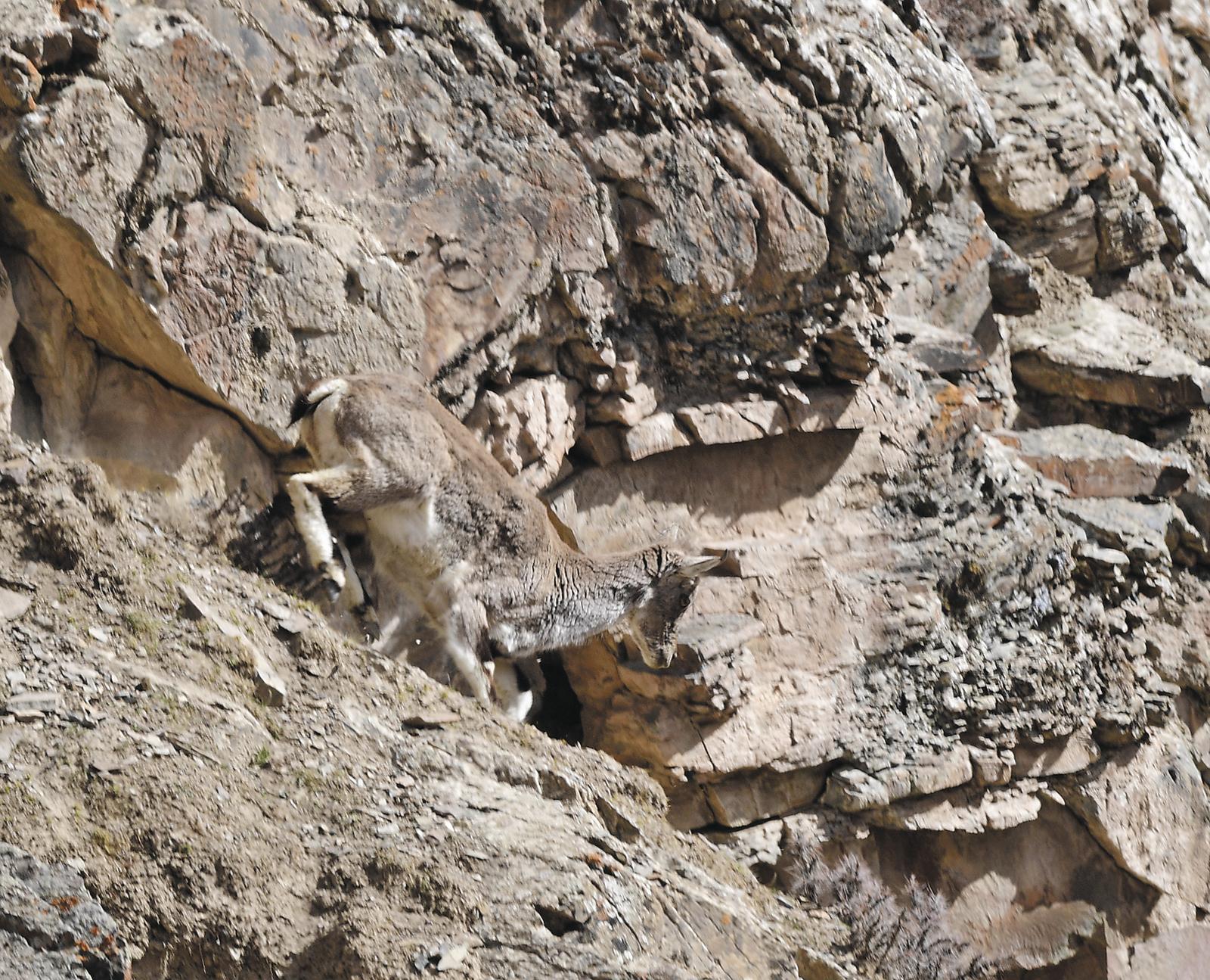 车刚停稳,那旭花便发现了山坡上的岩羊群。我们徒步向山坡走去,岩羊群迅速翻过山脊,从视野里消失。