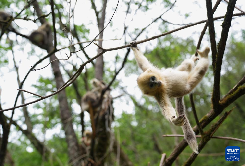 5月21日拍摄的密林中的小金丝猴。新华社记者 江宏景 摄