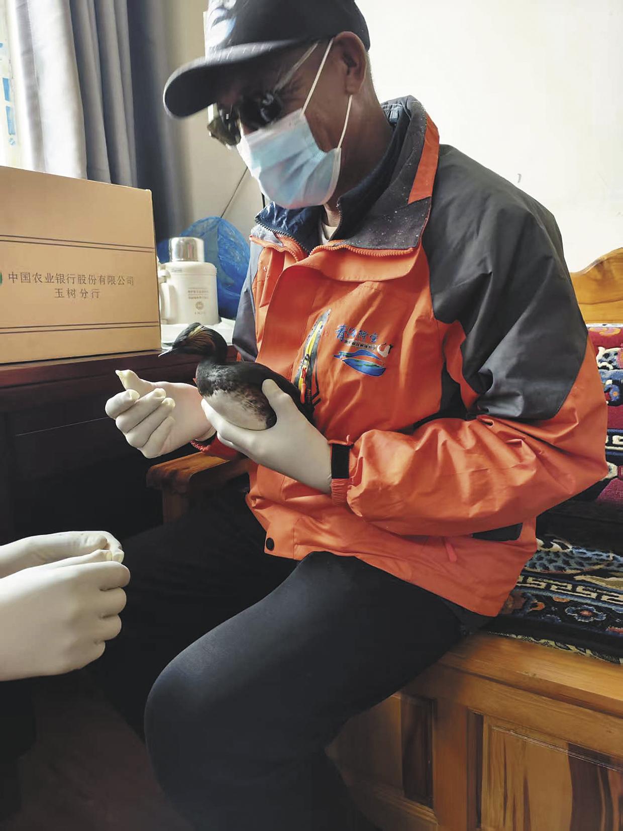 在救护站,隆宝国家级自然保护区管理站的工作人员张凯对黑颈鸊鷉进行了全面细致的检查,张凯每一个动作都轻柔谨慎,生怕给这个脆弱的小生命带来一丝伤害。