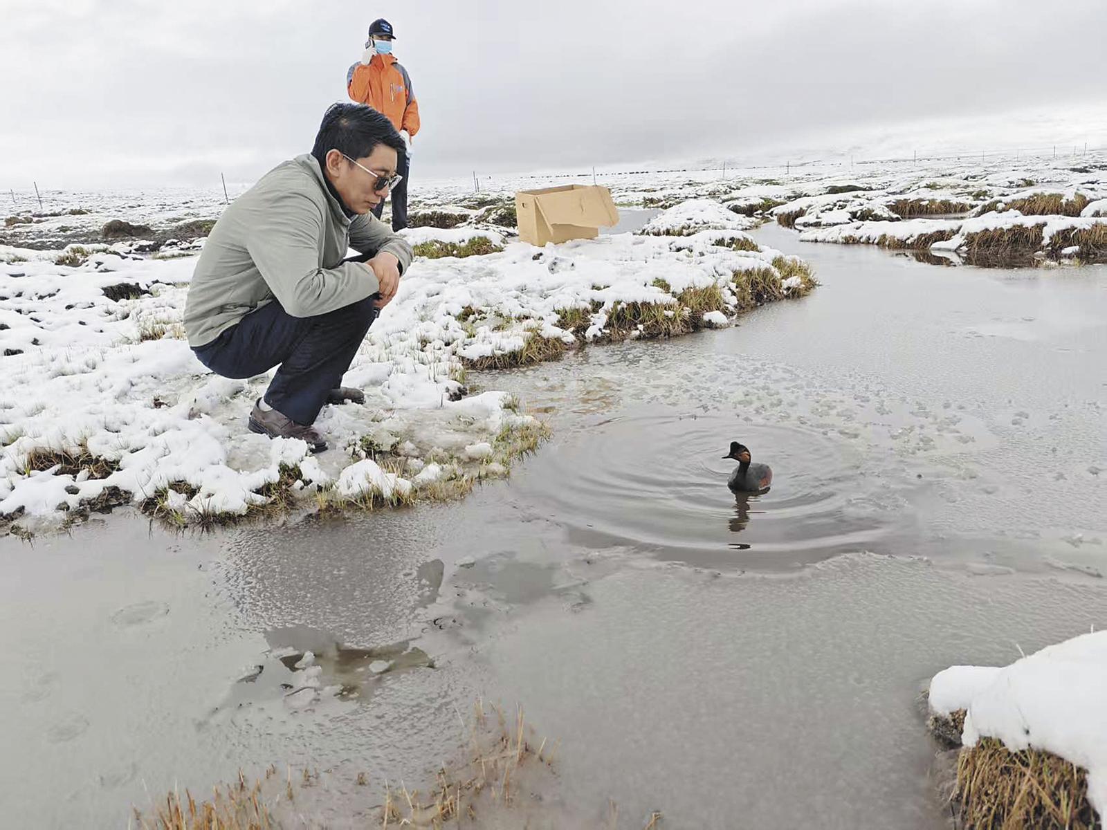 黑颈鸊鷉重回大自然。玉树隆宝国家级自然保护区供图