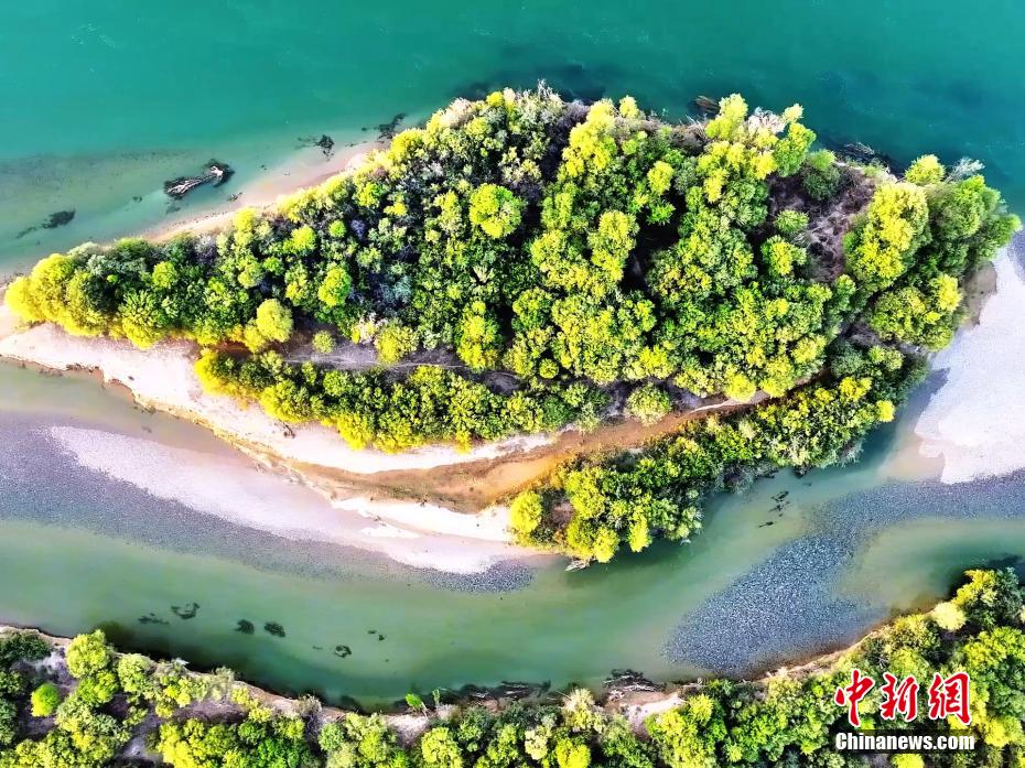 图为青海省海南藏族自治州贵德县境内黄河水碧绿清澈。(无人机照片)李玉峰 摄