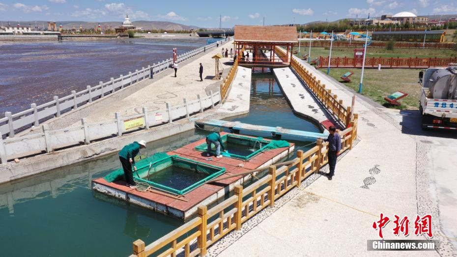 6月11日,青海省海北藏族自治州刚察县举办第十七届青海湖裸鲤增殖放流暨观鱼季活动。民众将100万尾青海湖裸鲤鱼苗放流至青海湖入湖河之一的沙柳河中。