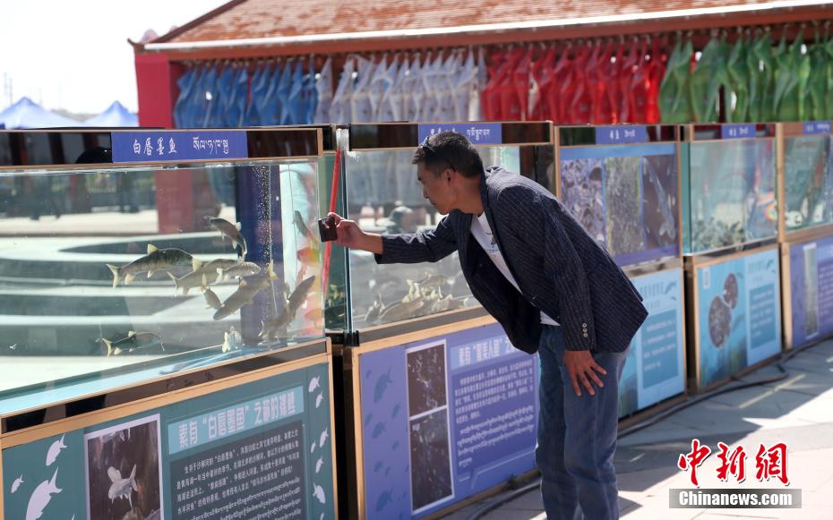 图为民众在裸鲤展台前拍照。张忠苹 摄