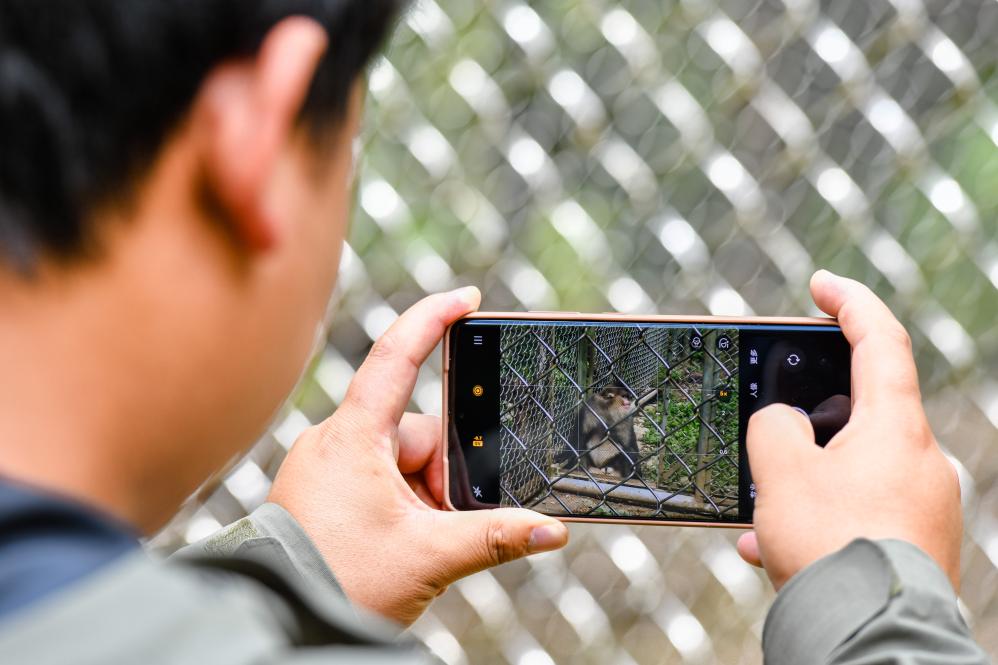 6月15日,保护区工作人员在救助站拍摄记录被救助的滇金丝猴状况。