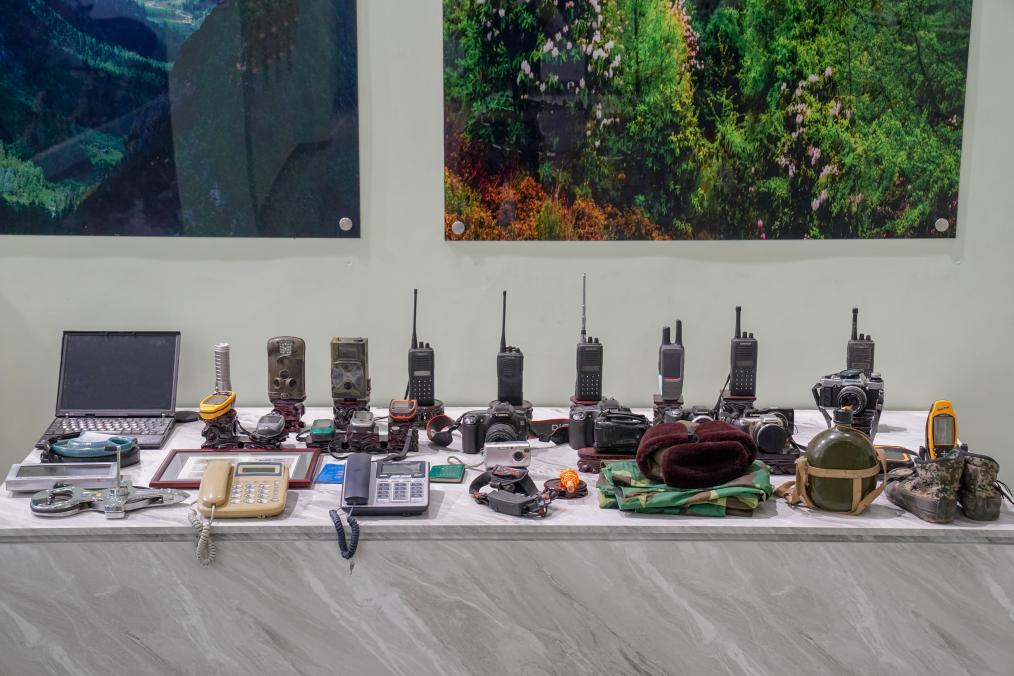 6月15日在白马雪山保护区成果展厅拍摄的历代保护区工作人员所使用的部分设备。