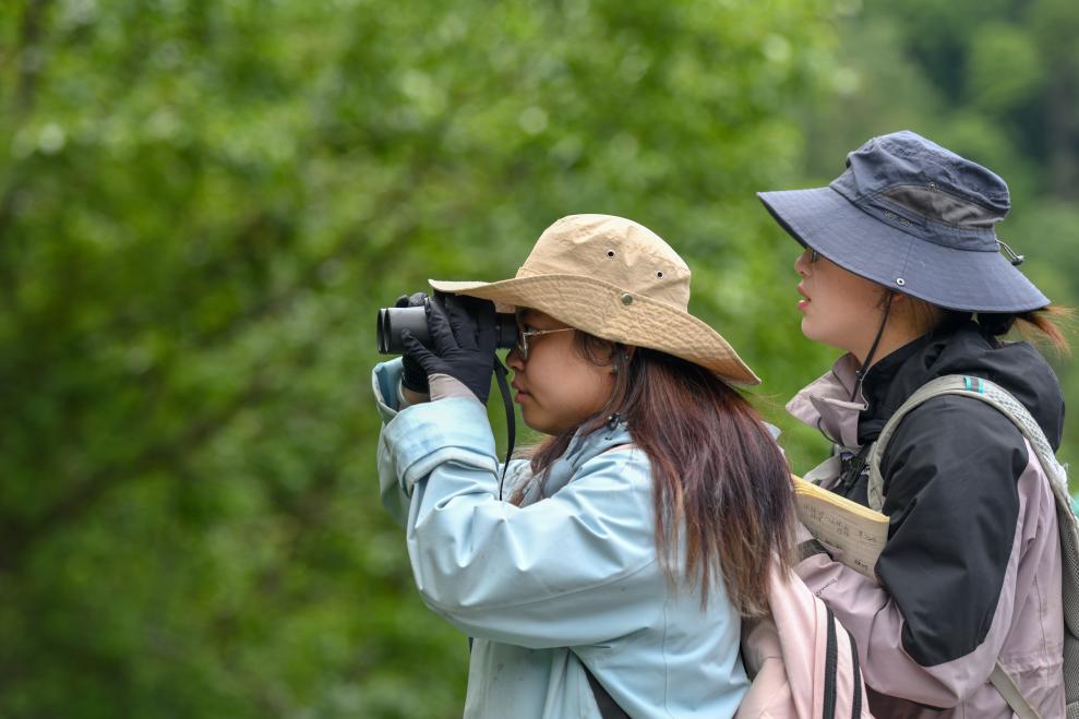6月15日,西华师范大学研究生使用望远镜观测滇金丝猴。