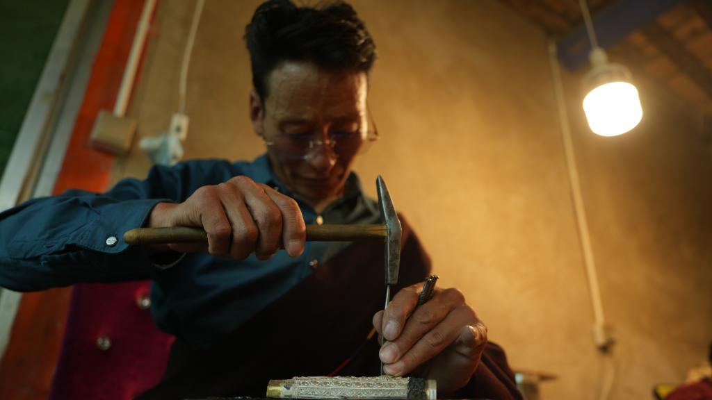青海玉树安冲乡的安冲藏刀制刀匠人江洛,从13岁起开始学习制作藏刀。