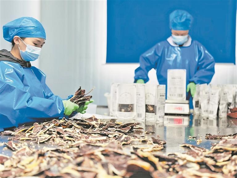 流水线上,一包包产品鱼贯而出。李永波 摄