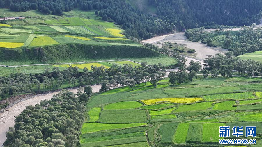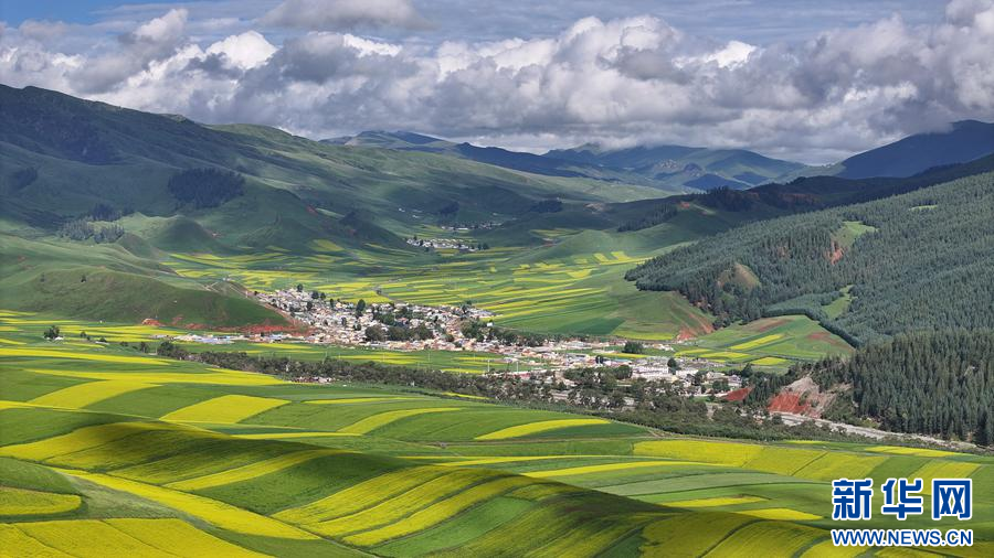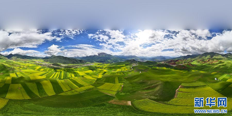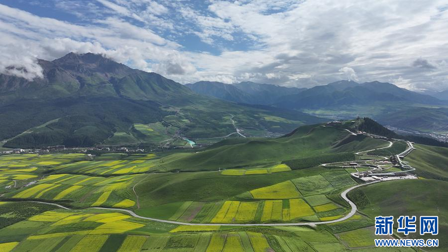 航拍祁连县万亩油菜花田。新华网 安雪姣 摄