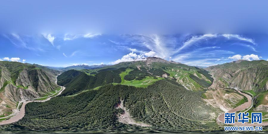 航拍祁连9号公路。新华网 安雪姣 摄