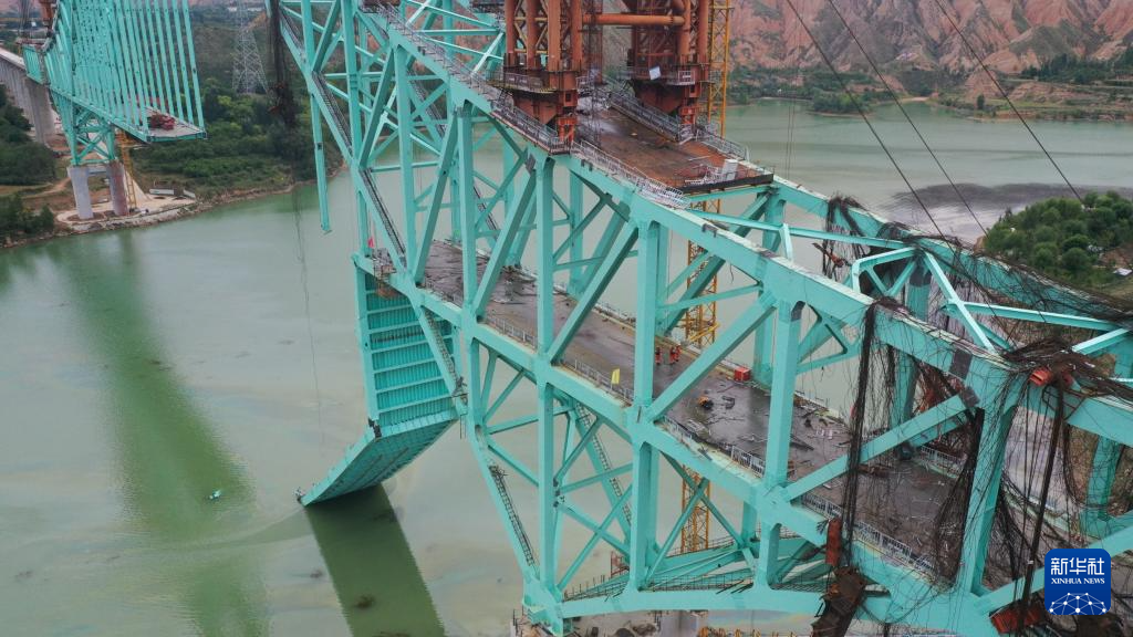 这是8月22日拍摄的川青铁路青海段尖扎黄河特大桥事故现场(无人机照片)。新华社记者 周盛盛 摄