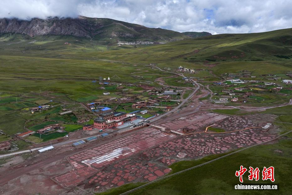 8月22日,航拍位于青海省玉树藏族自治州囊谦县的白扎盐场秋日景色。拥有上千年历史的白扎盐场至今仍沿袭着古老的晒盐、制盐方式,所生产的食盐畅销西藏、四川、甘肃等省区。