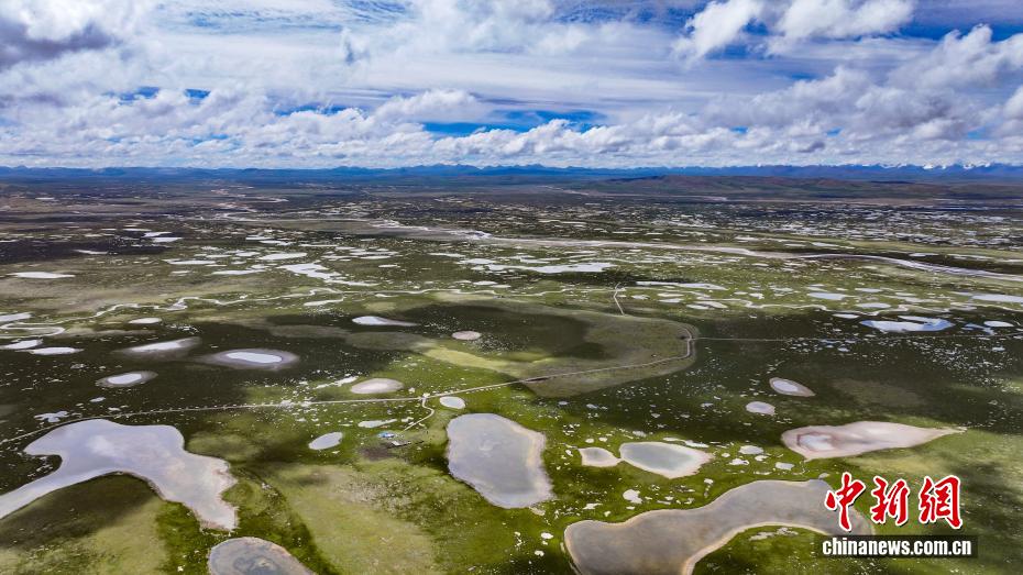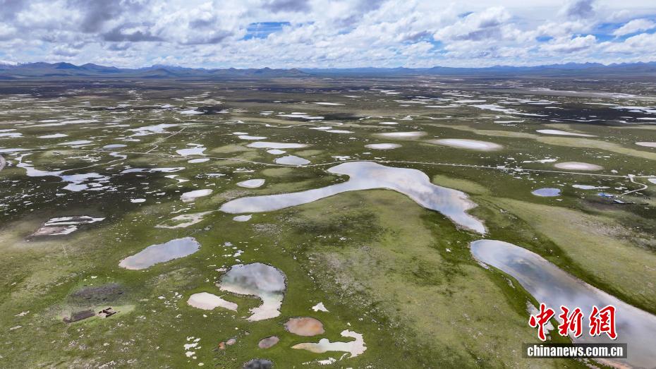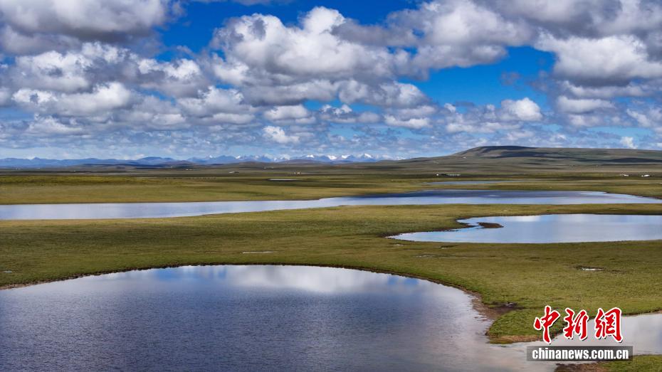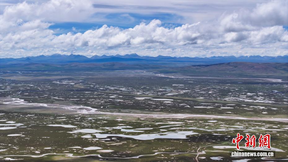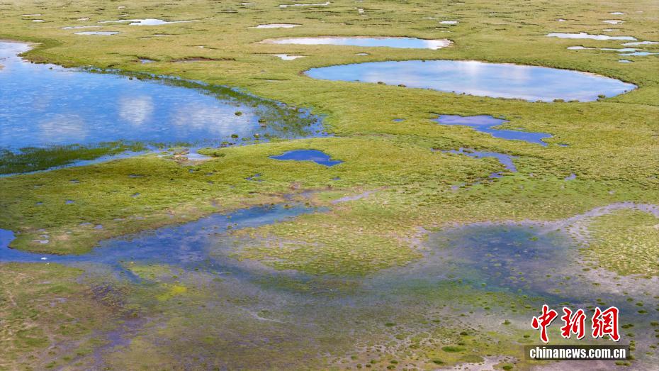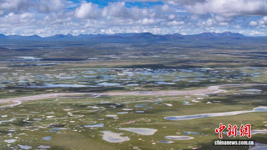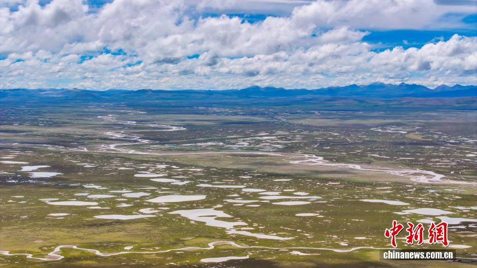 8月22日,航拍中国三江源国家公园长江源园区最大的泥碳湿地——查旦湿地。(无人机照片)中新社记者 马铭言 摄