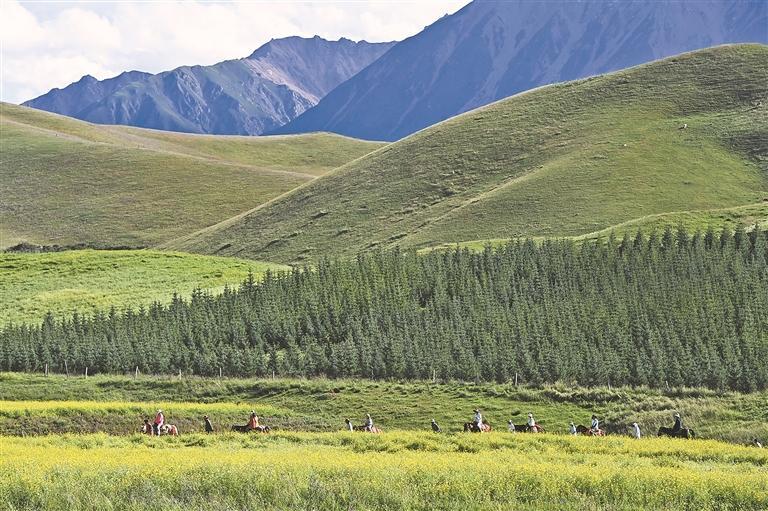 身处祁连山林,郁郁葱葱,清澈的溪流潺潺流淌。游客们沿着山间步道攀登,呼吸着清新的空气,负氧离子高达每立方厘米7600多个。站在山顶,极目远眺,祁连多彩的地貌尽收眼底,红色的丹霞地貌与翠绿的草原、金黄的油菜花相互映衬,色彩斑斓,让人不禁心旷神怡。正在山林里带孩子们度假的来自湖北的游客徐女士兴奋地说:“这里太美了,太震撼了,我感觉就像走进了童话世界,每一处景色都让人陶醉,尤其是让孩子们更加体验到了大自然的美。”