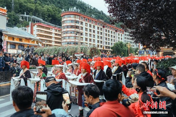 木雅婚俗巡游吸引市民和游客。木雅婚俗巡游供图