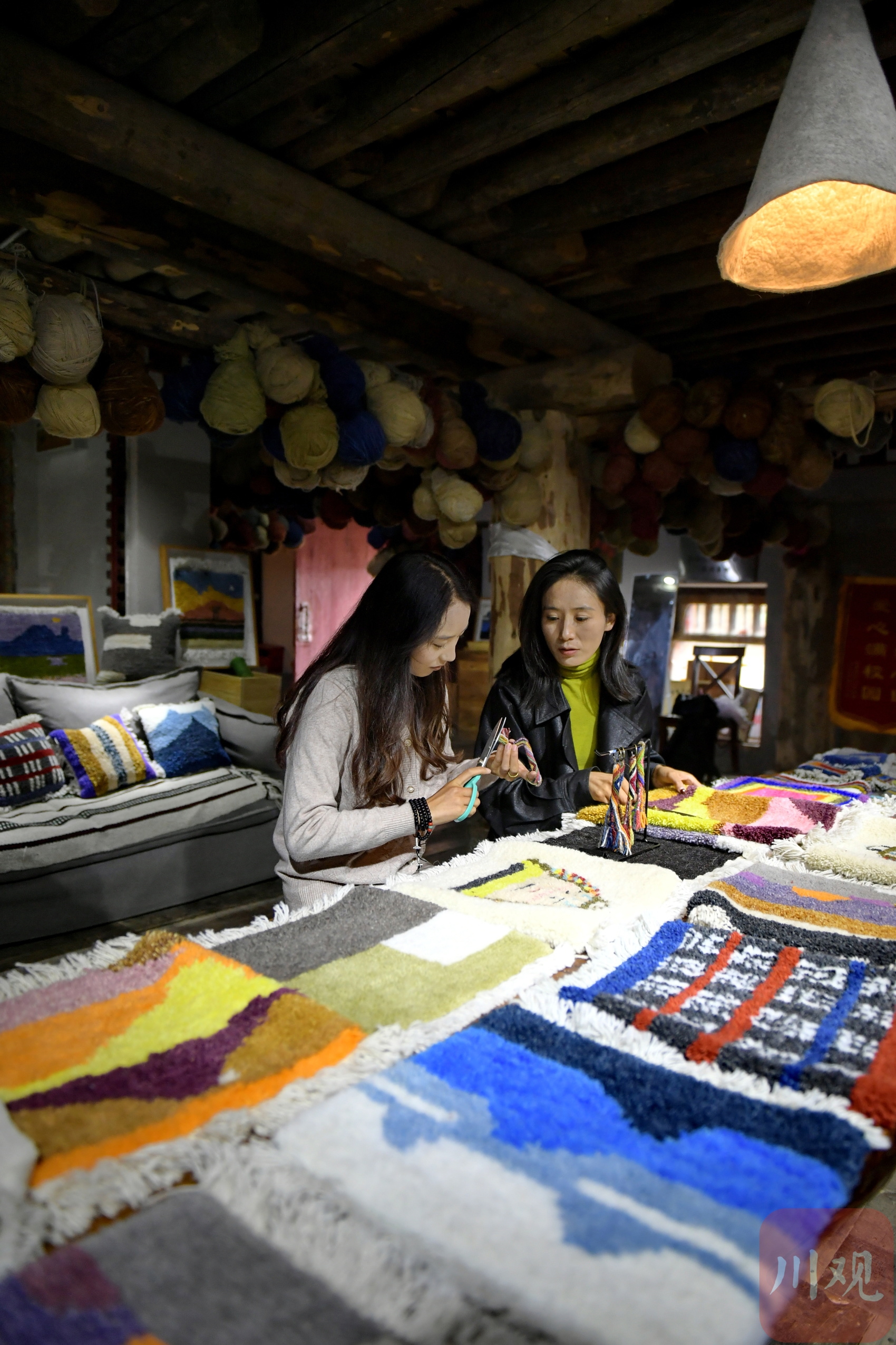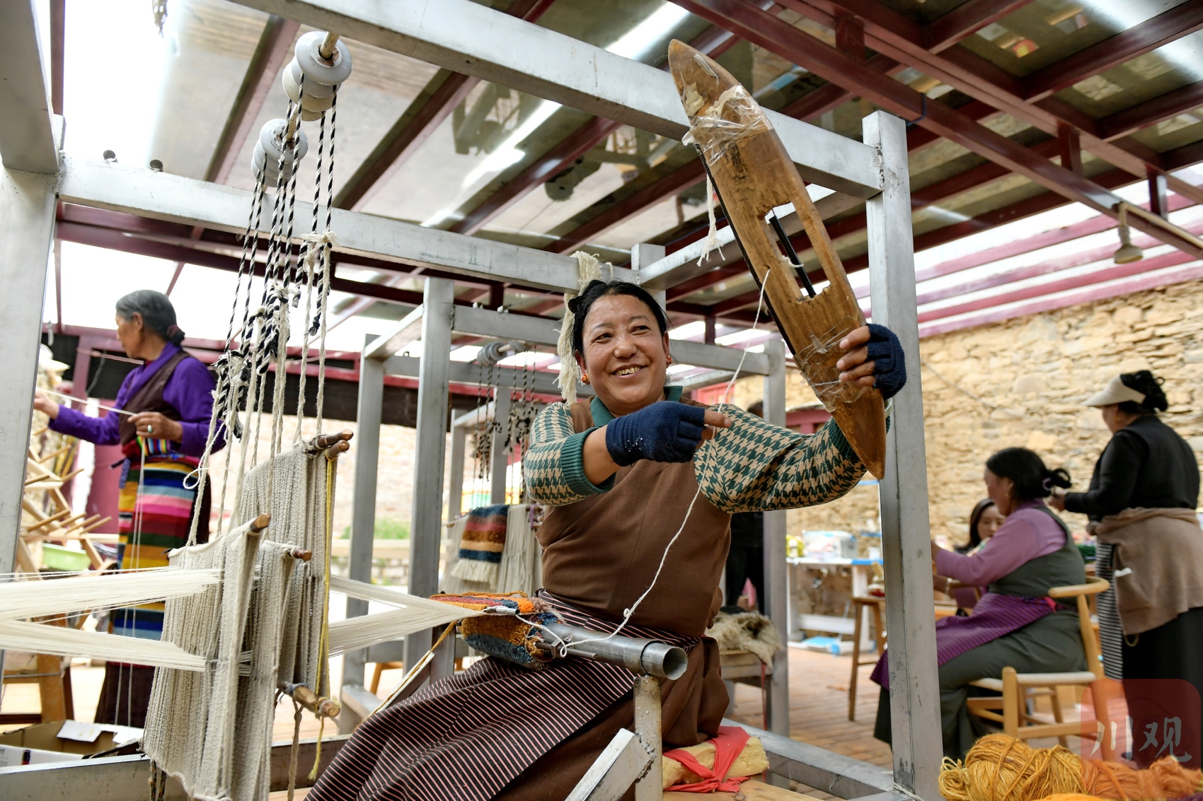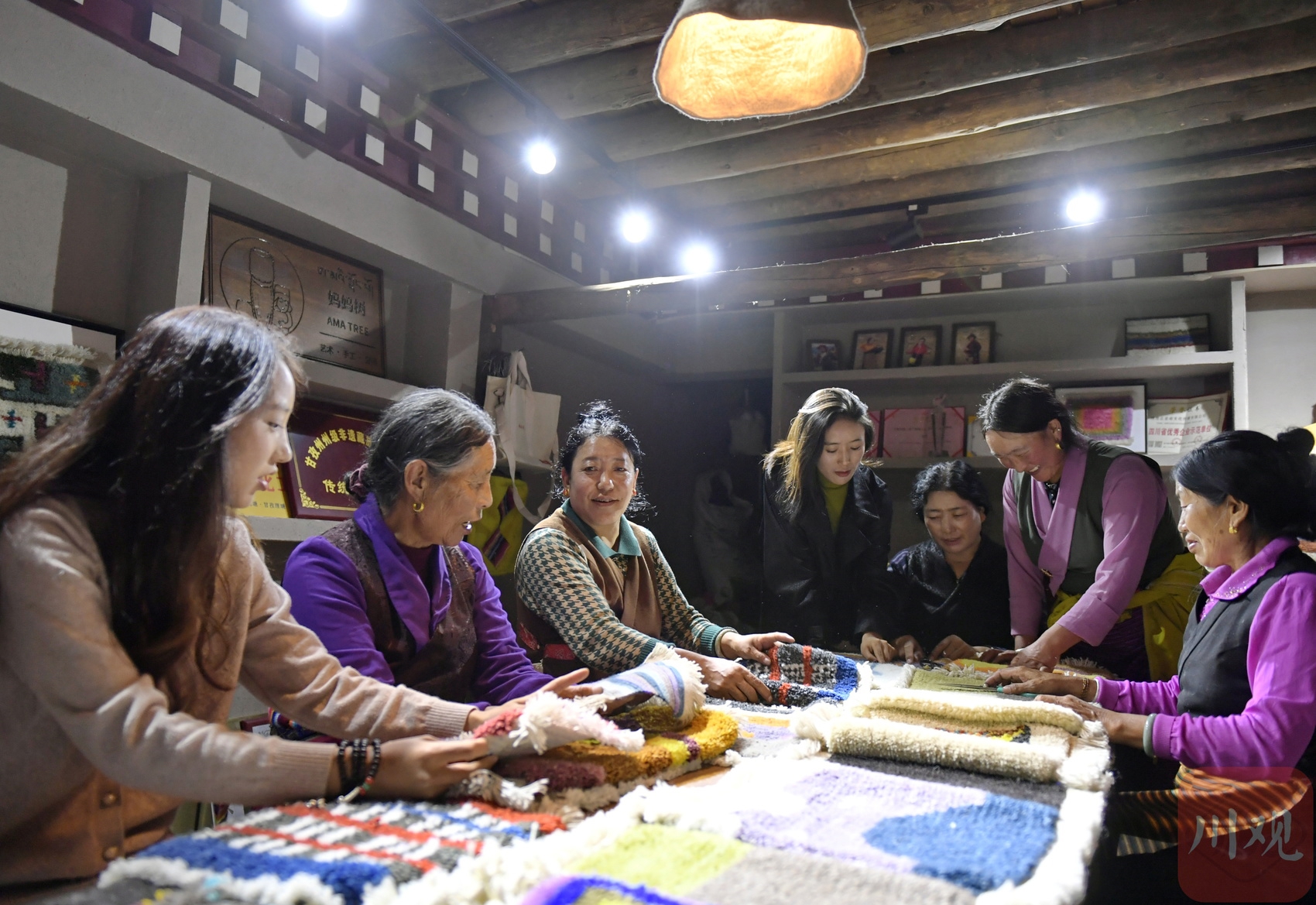 2025年9月3日,在四川省甘孜藏族自治州理塘县“勒通古镇·千户藏寨”旁的“妈妈树”非遗工坊,一群“织女”正在忙着赶制浙江的“妮热”产品订单,有的在盘线团,有的在经线,有的在织毯……现场一片繁忙景象。