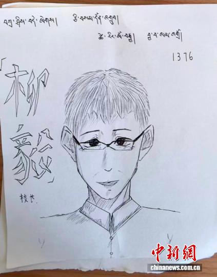 图为果洛州大武民族中学学生为柳毅画的肖像。受访者供图