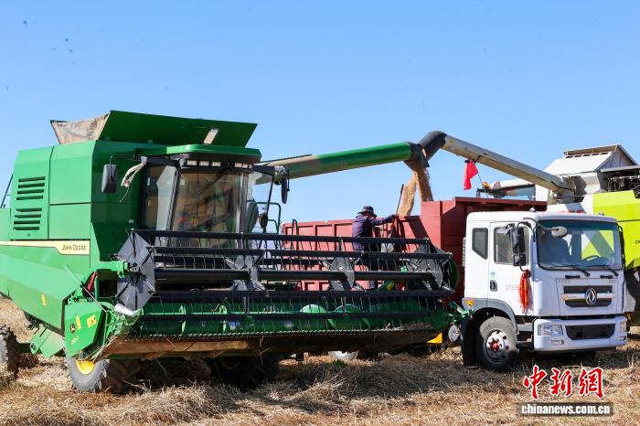 图为小麦收割现场。中新社记者 薛蒂 摄