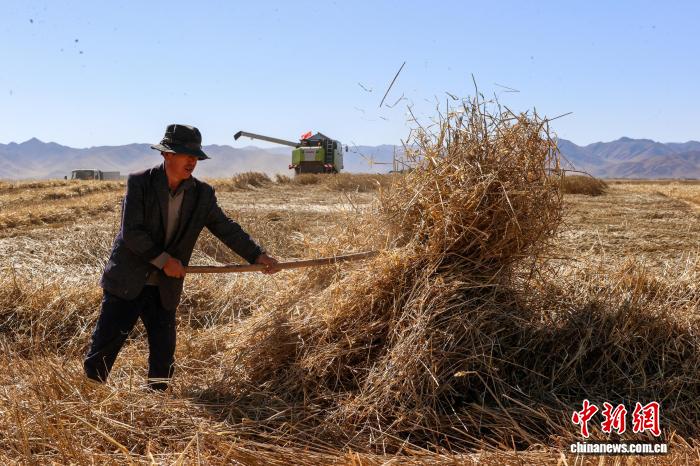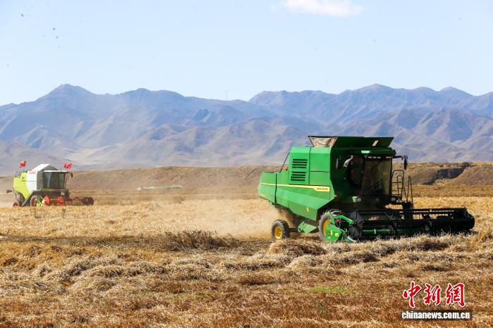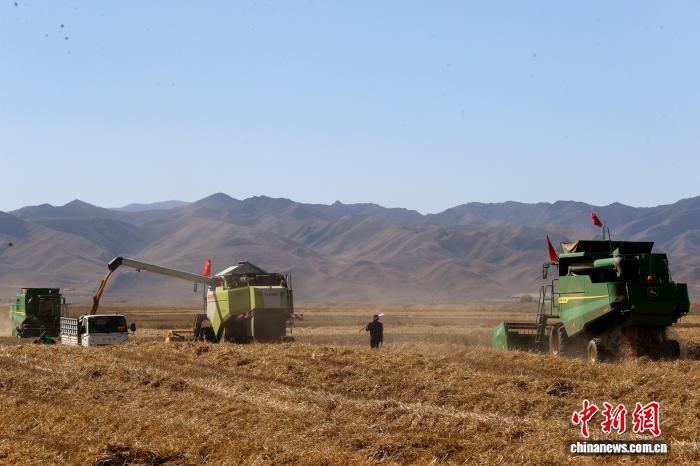 10月15日,青海省海南藏族自治州贵南县种植的万亩小麦进入收割季。近年来,该县推广优良品种与机械化作业,为秋粮稳产丰收提供了坚实保障。