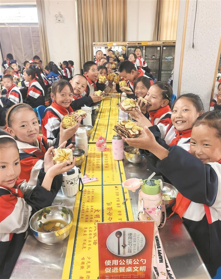 学生共进营养餐。冉志敏 摄