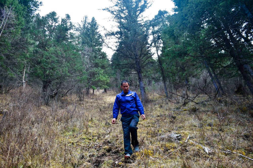 58岁的居俄乐是班玛县亚尔堂乡王柔村的牧民,2005年成为玛可河林业局的生态管护员,他负责的管护区域面积达6000多亩,涵盖原始森林、高山草甸和珍稀野生动物栖息地。“起初我们在巡山时遇到盗伐案件,经常和盗伐者发生口角,他们还偷偷放掉我摩托车的汽油。”居俄乐说。