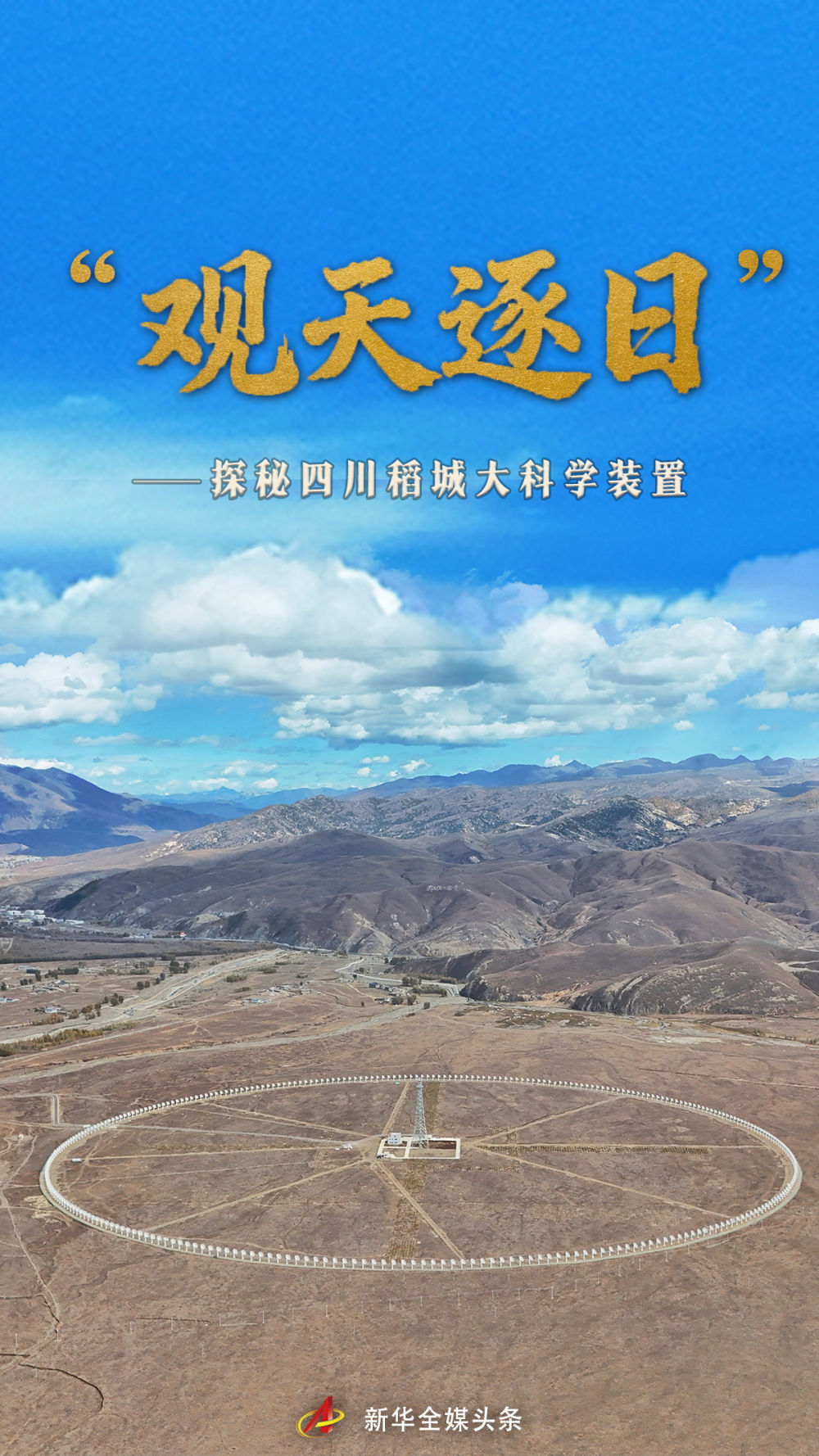 稻城县城不远的傍河边,目前全球规模最大的综合孔径射电望远镜——直径1公里、313个6米口径天线组成的“圆环阵”逐日而动,为提升空间天气精准预报能力提供重要支撑……