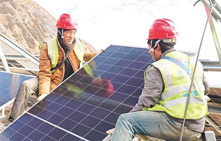 在海拔4500米的云南省迪庆藏族自治州香格里拉市格咱乡砌修塘光伏发电项目(二期)施工现场,建设者们克服零下5℃的严寒考验,争分夺秒、迎寒而上,全力冲刺今年12月31日实现全容量并网发电目标。