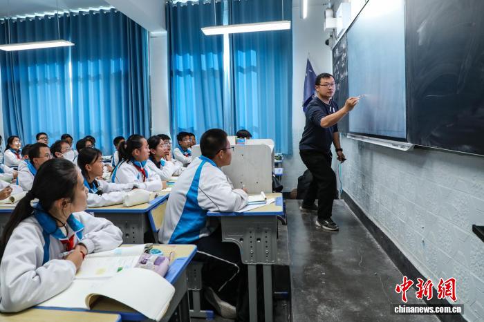 图为援青教师舒海波在海西州德令哈市第一中学为学生上课。马铭言 摄