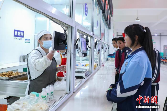 图为学生在海西州高级中学食堂使用刷脸支付系统。马铭言 摄
