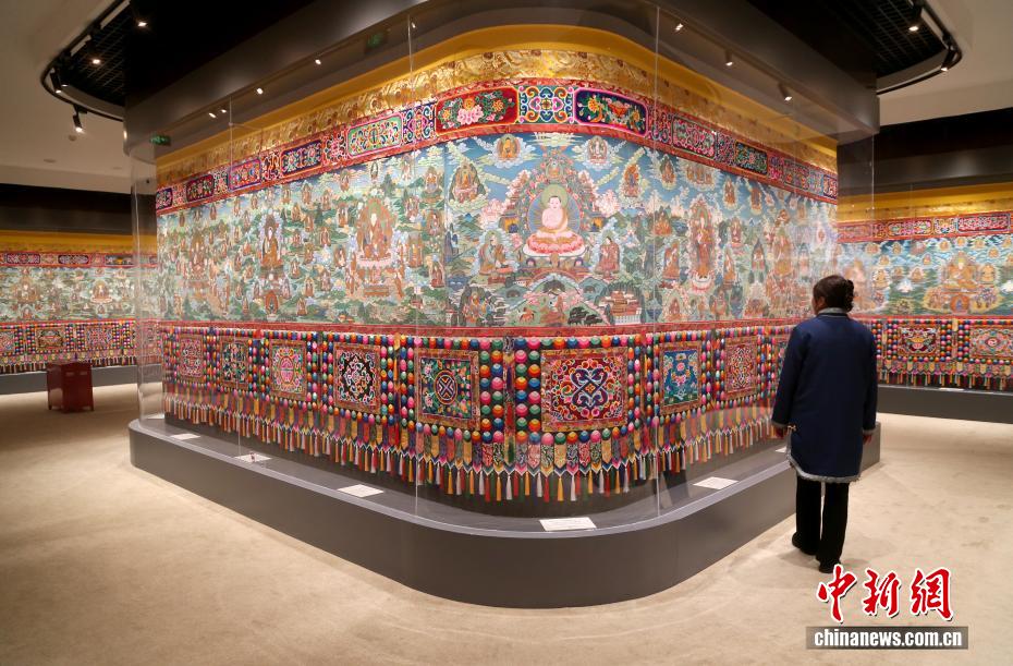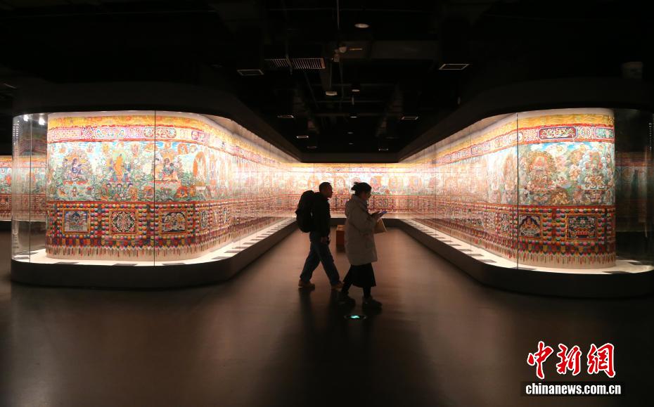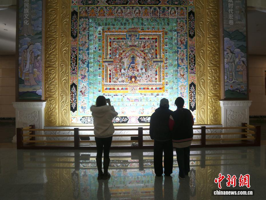 12月24日,游客在青海藏医药文化博物馆参观《中国藏族文化艺术彩绘大观》巨型唐卡。作为全球唯一以藏医药为主题、兼具藏文化特色的综合型博物馆,该馆馆藏文物近6万件/套。丰富的藏品不仅重现了青海多元文化交融共生的历史图景,更完整展现出精深博远的藏文化体系,如今已成为热门文化打卡地。张忠苹 摄