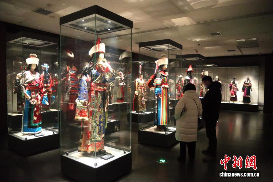 12月24日,游客在青海藏医药文化博物馆内参观藏族服饰。作为全球唯一以藏医药为主题、兼具藏文化特色的综合型博物馆,该馆馆藏文物近6万件/套。丰富的藏品不仅重现了青海多元文化交融共生的历史图景,更完整展现出精深博远的藏文化体系,如今已成为热门文化打卡地。张忠苹 摄