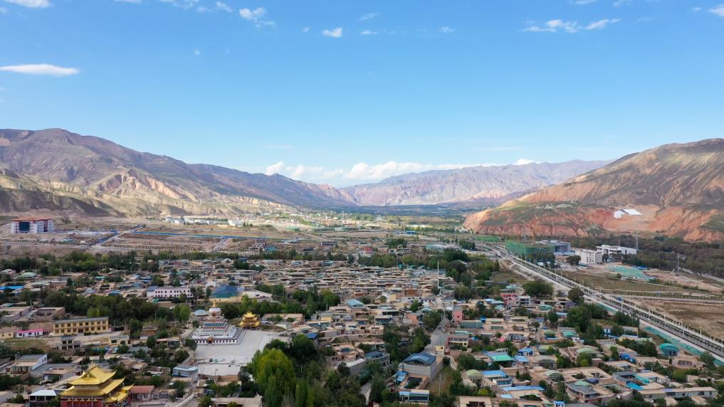 青海省黄南藏族自治州同仁市景色(无人机照片)。新华社记者 王艳 摄