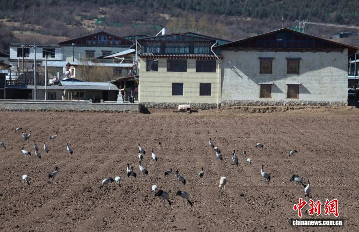 1月22日,一群黑颈鹤在纳帕海栖息。中新社记者 黄兴鸿 摄