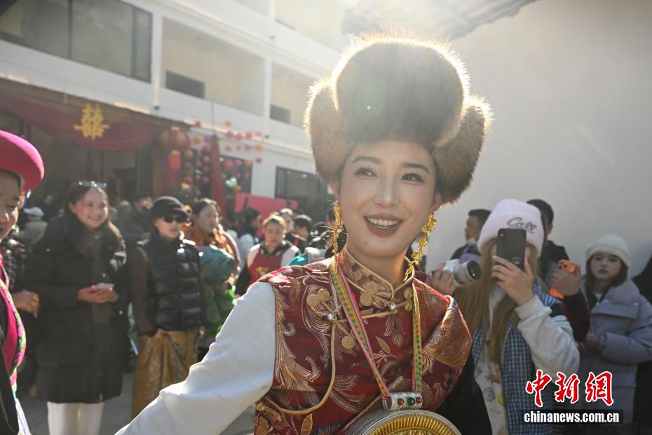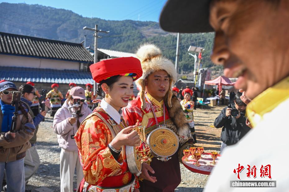 1月24日,在雪域高原云南省迪庆藏族自治州香格里拉市仓觉村,全网粉丝量超30万的藏族姑娘扎史永宗和丈夫扎史培楚举行了一场打破线上与线下、地域与时空、传统与现代多重“次元壁”的婚礼。婚礼上,新人穿着传统藏式婚服,按习俗完成接亲、祈福等仪式,亲朋好友围在一起跳锅庄舞。同时,现场摆放着现代风格的婚纱照,用花艺等做装饰,还通过5G网络直播,让没能到场的网友也能身临其境,传统婚俗在现代表达中焕发新生。