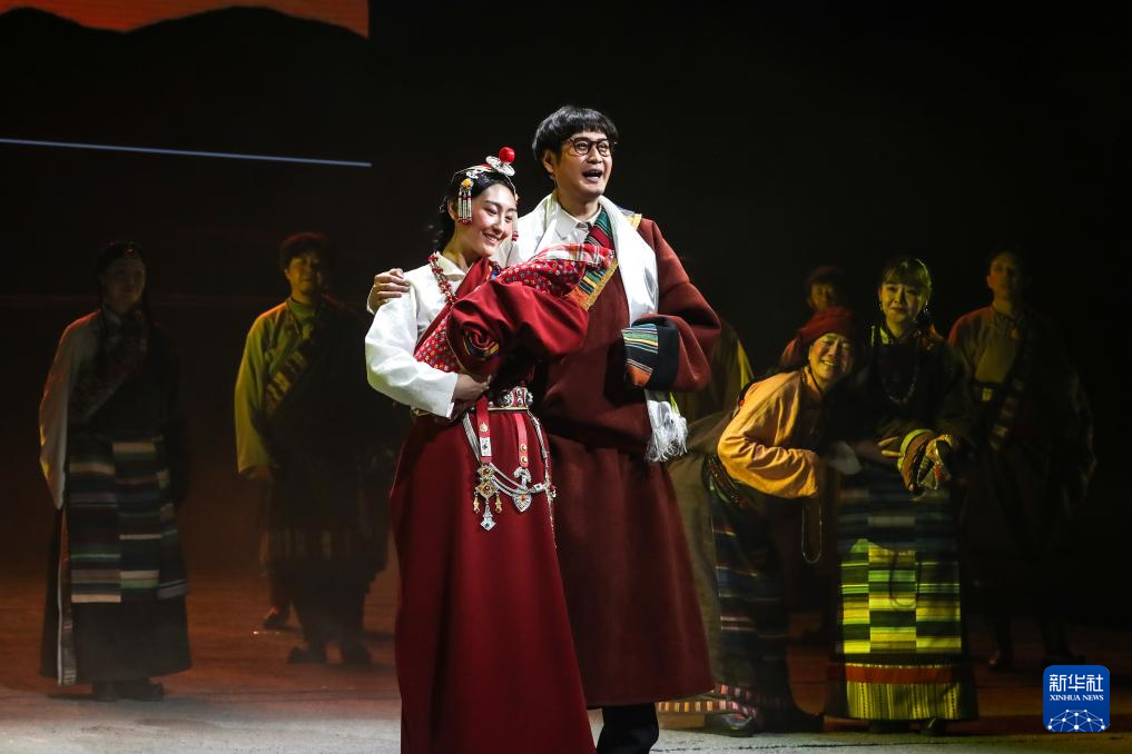 1月28日晚,在甘肃黄河剧院,甘肃省话剧院演员在话剧《青青的阿万仓》中表演。新华社记者 郎兵兵 摄