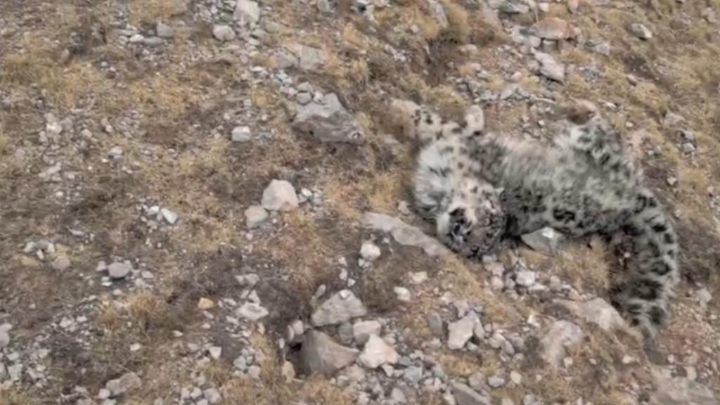 这是牧民在青海省玉树藏族自治州杂多县发现的野生雪豹。