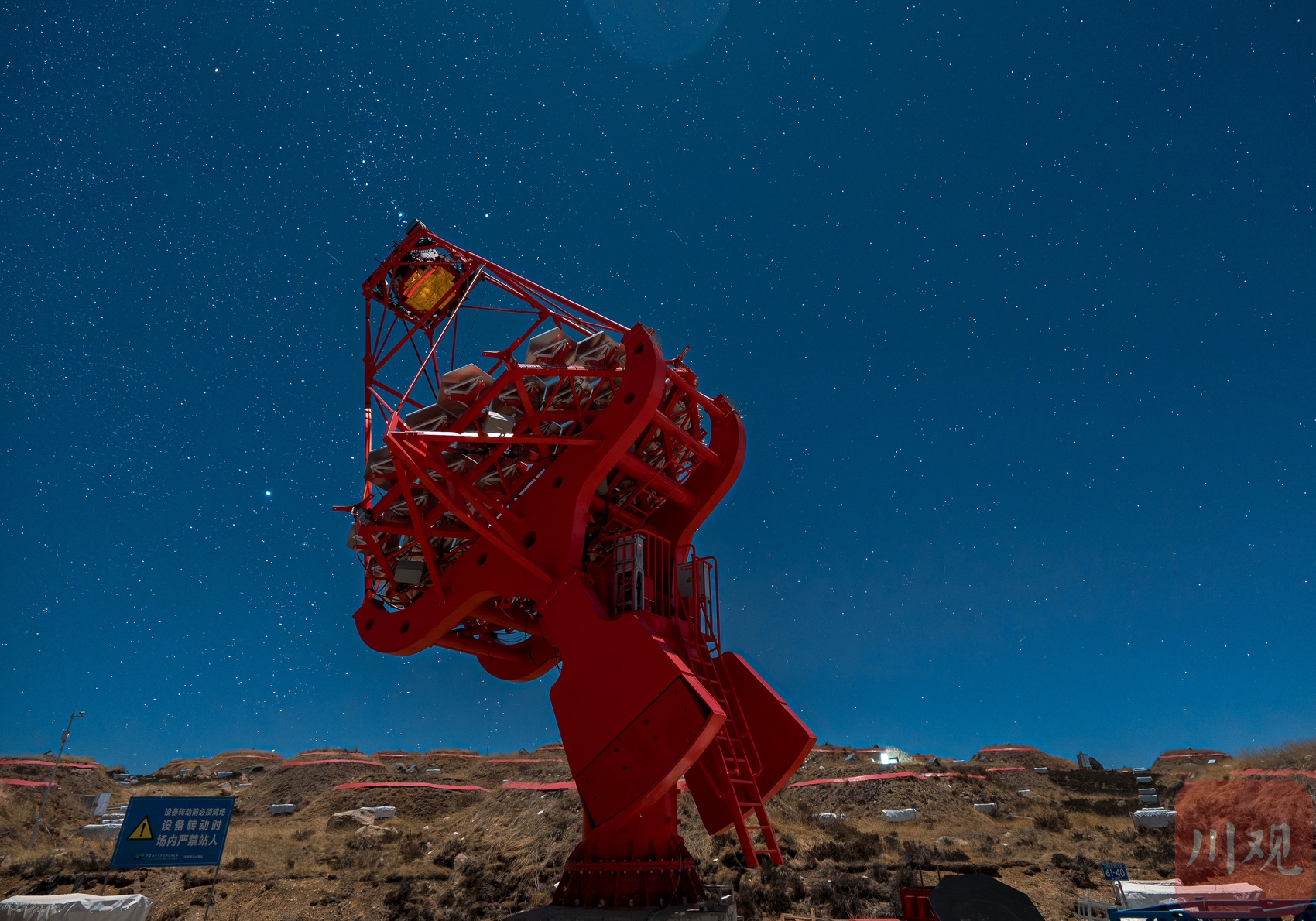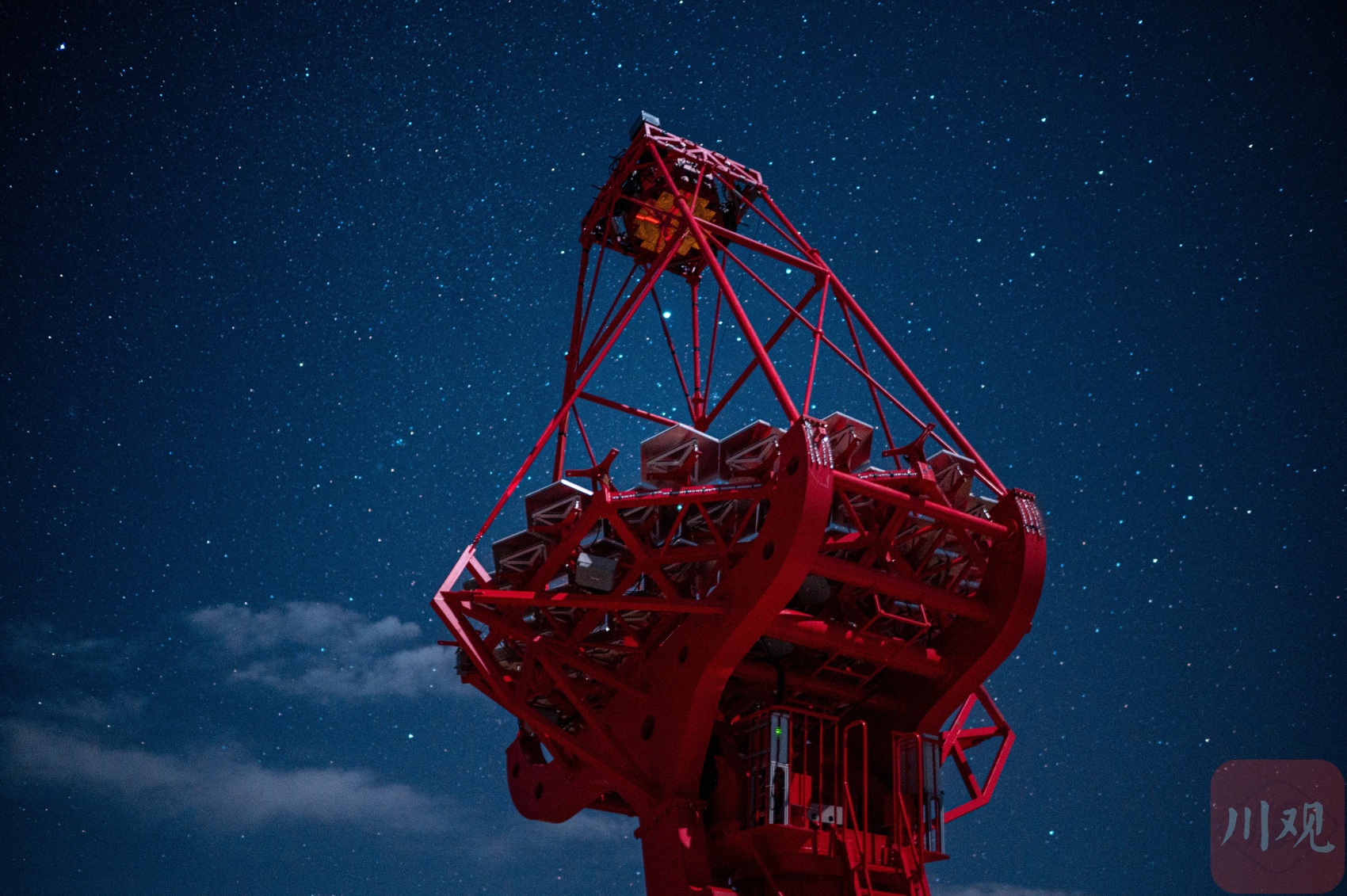星空下大型超高能伽马源立体跟踪装置(LACT)正在工作。