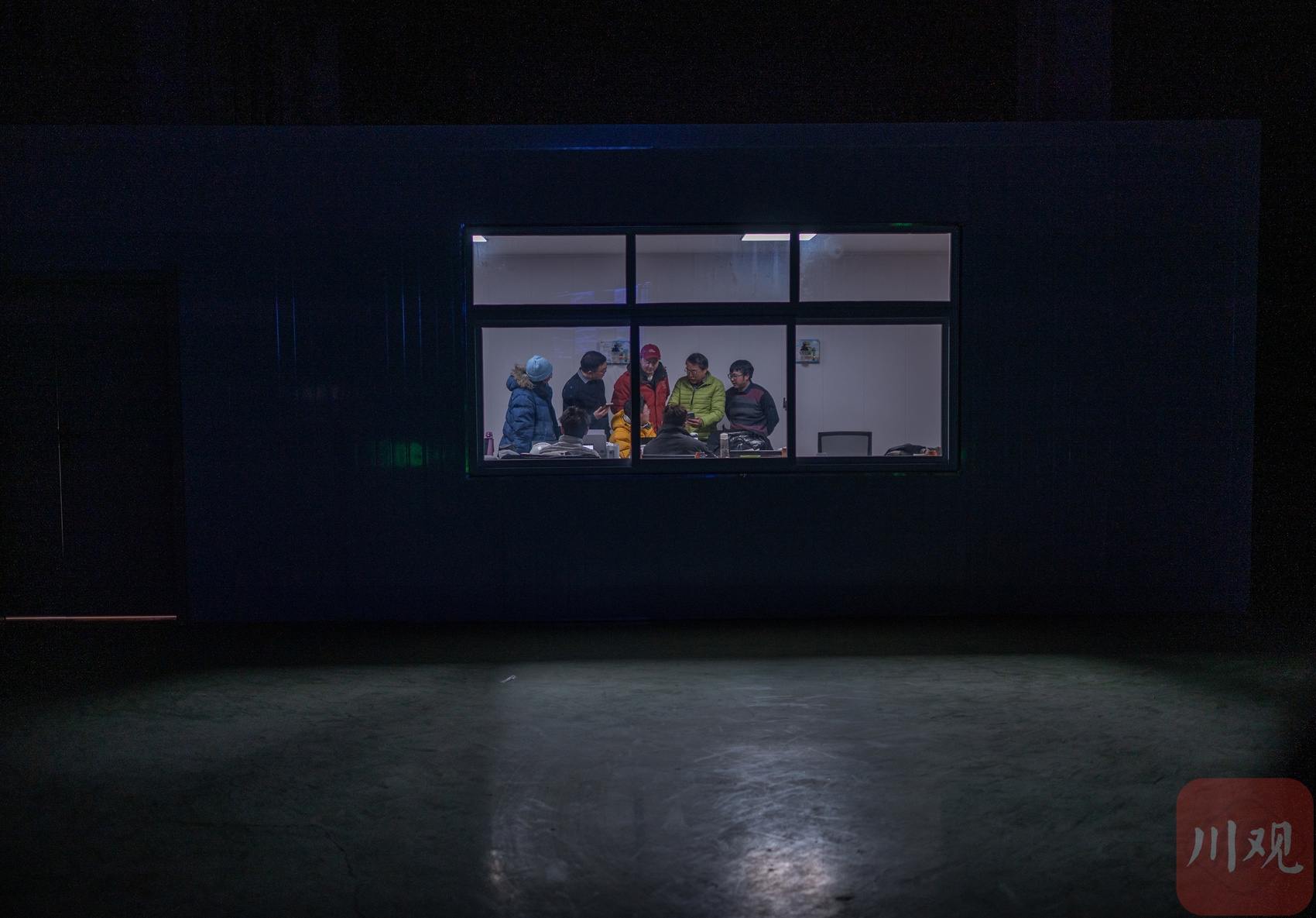 在观测室中科研人员正在观察结果。