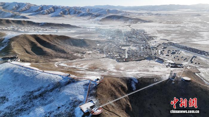 2025年2月26日,图为雪后的玛曲县阿万仓镇。(无人机照片) 九美旦增 摄