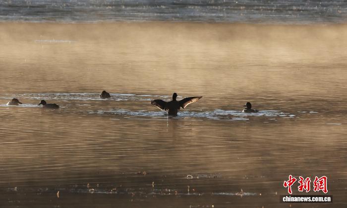 1月23日,5只候鸟在纳帕海嬉戏。黄兴鸿 摄