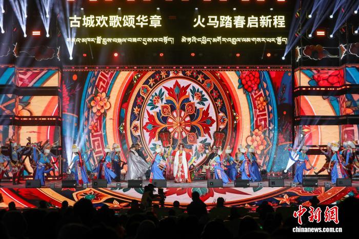 2月10日晚,青海贵德,2026藏历火马新年文艺晚会上演。来自青海、西藏、四川等地的歌手和演员同台献艺,在欢歌笑语中传递吉祥祝福。