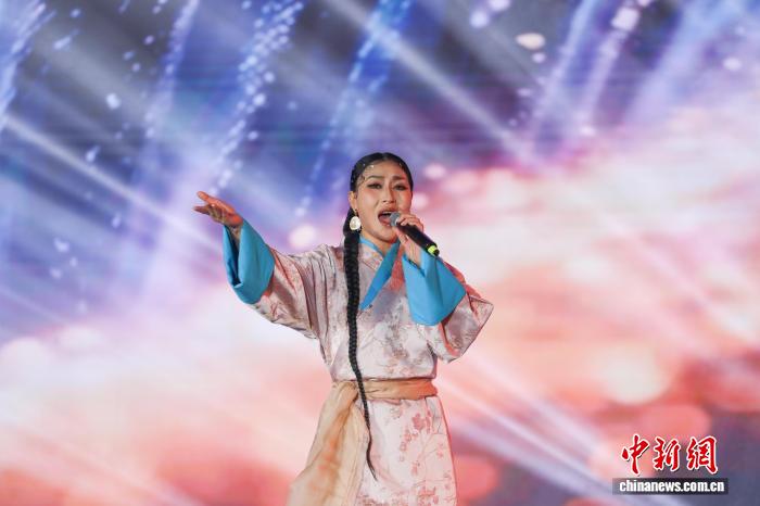图为四川籍歌手兰卡措演唱歌曲《雪域仙女情》 。中新社记者 马铭言 摄