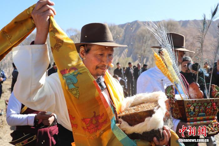 图为民众撒种祈福。中新社记者 马铭言 摄