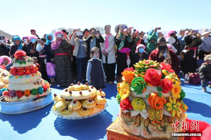 图为春耕现场摆放的“彤糕”。中新社记者 马铭言 摄
