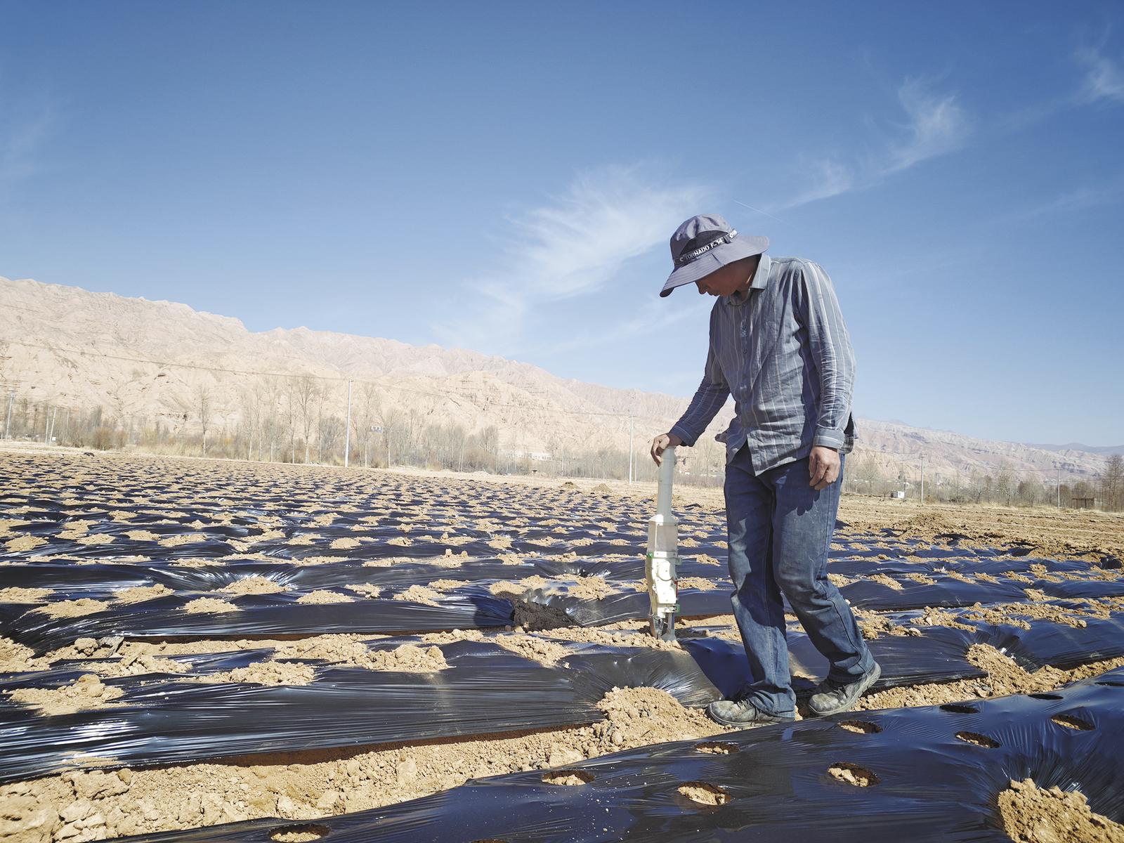 在尕让乡蓆芨滩村三社,村民开始播种白菜。顾植霞 摄