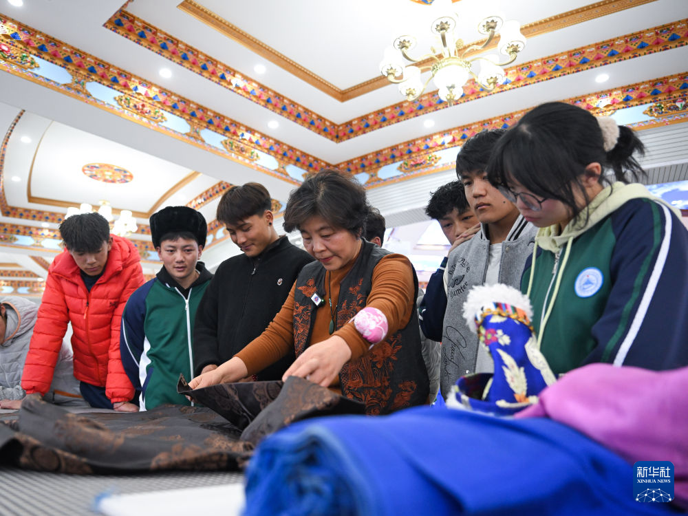 3月30日,在青海省海北藏族自治州职业技术学校,山东援青教师丁连翠(右二)在指导学生实操。新华社记者 张龙 摄