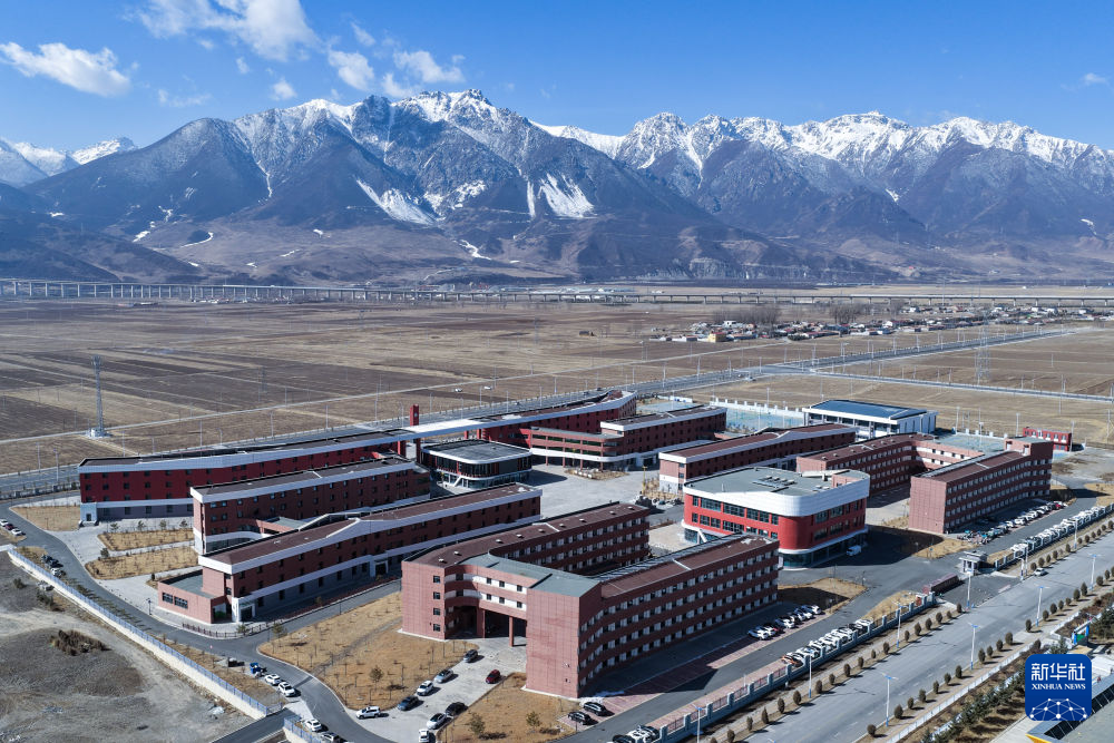 这是位于青海省海北藏族自治州门源回族自治县的浩门镇高级中学,由山东省和中粮集团援建(3月31日摄,无人机照片)。新华社记者 张龙 摄
