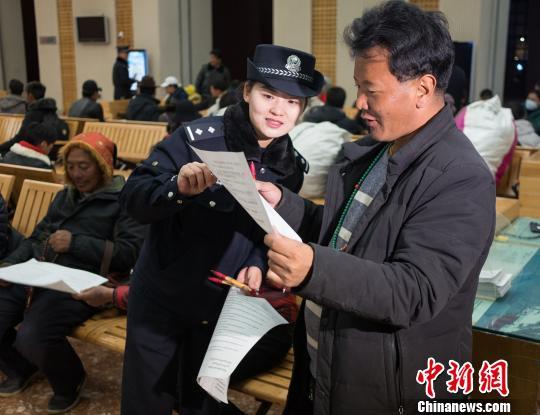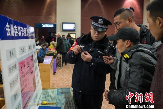 拉萨铁路公安处民警为旅客讲解如何识别假火车票。 何蓬磊 摄