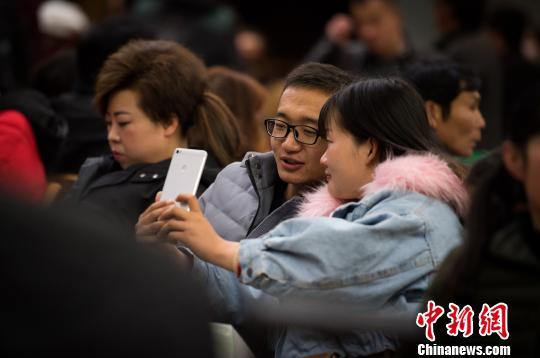 旅客在候车室合影。 何蓬磊 摄