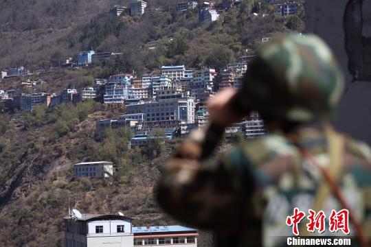 图为女子巡逻队队员在远处观察樟木镇。 罗兴伟 摄